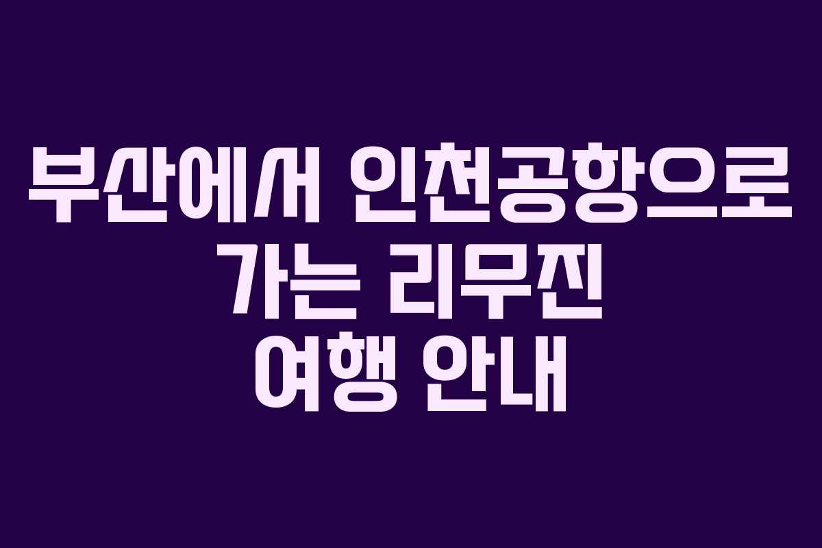 부산에서 인천공항까지 편리하게 이동할 수 있는 리무진 버스 서비스에 대해 소개합니다. 이 서비스는 해운대와 동래를 경유하여 인천공항까지 약 5시간 30분이 소요됩니다. 편안한 여행을 위해 리무진에서 휴식하며 출발해 보세요.