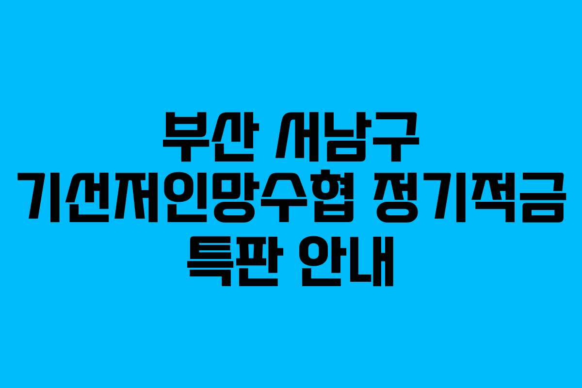 부산 서남구 기선저인망수협에서 12월 9일(금)부터 특판 정기적금을 판매합니다. 이 상품은 12개월에서 36개월까지 선택할 수 있으며, 금리는 7%로 설정되어 있습니다. 월 불입한도는 100만 원으로, 비대면으로 가입할 수 있는 점이 특징입니다.