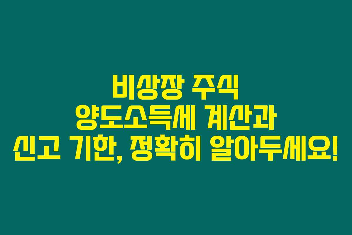 비상장 주식을 거래하고 있다면 꼭 알아야 할 세금, 바로 양도소득세죠. 혹시 비상장 주식의 양도소득세 계산과 신고 기한을 모른다면, 아래를 읽어보시면 굉장히 유용할 거예요. 이 글을 통해 비상장 주식 거래에서 발생할 수 있는 세금의 간단한 계산법과 신고 기한을 자세히 정리해볼게요.