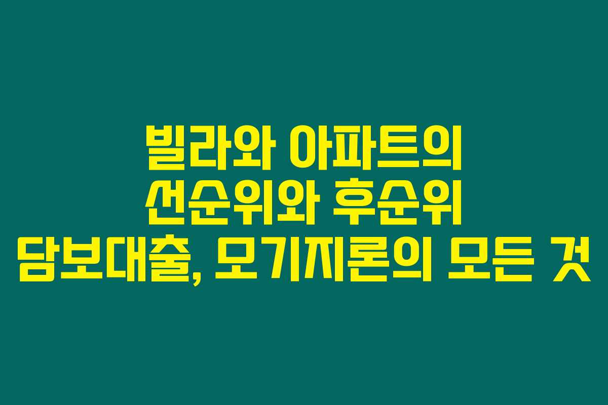 빌라와 아파트의 선순위와 후순위 담보대출, 모기지론의 모든 것