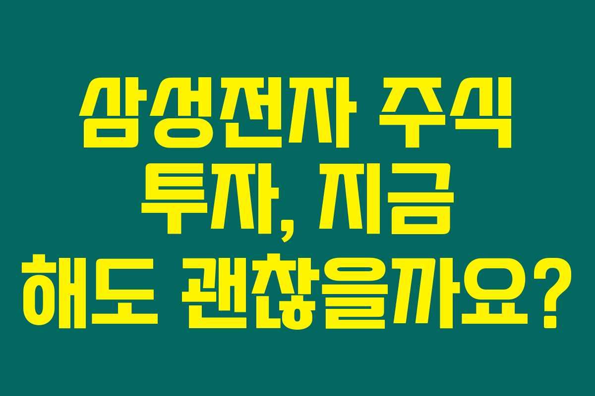 삼성전자 주식 투자, 지금 해도 괜찮을까요?
