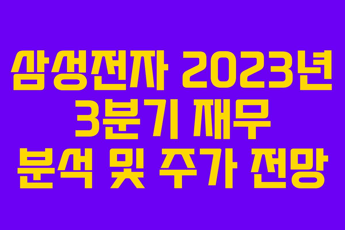 삼성전자의 2023년 3분기 재무보고서를 통해 최신 주가 전망을 살펴보겠습니다. 이번 분석은 재무 상태, 손익, 현금 흐름에 중점을 두고 진행되며, 사업 내용과 매출 분야에 대한 자세한 정보는 별도의 자료를 통해 확인하시기 바랍니다.