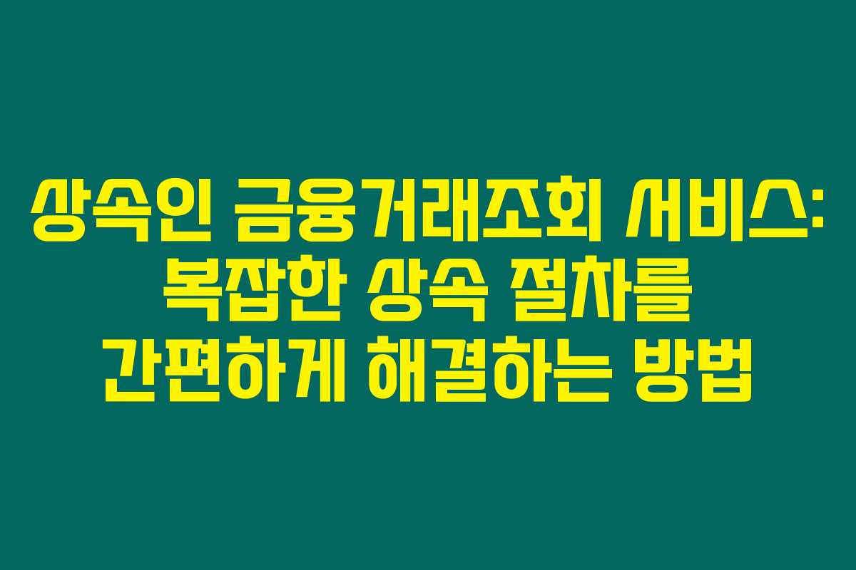 제가 직접 경험해본 바로는 상속인 금융거래조회 서비스는 상속 절차에서 가장 중요한 부분 중 하나에요. 상속을 받을 때, 고인의 금융 자산을 확인하는 것이 매우 중요한데, 이 서비스를 통해 더욱 쉽게 거래 내역을 확인할 수 있답니다. 아래를 읽어보시면 이 서비스의 필요성과 사용법에 대해 자세히 아실 수 있어요.