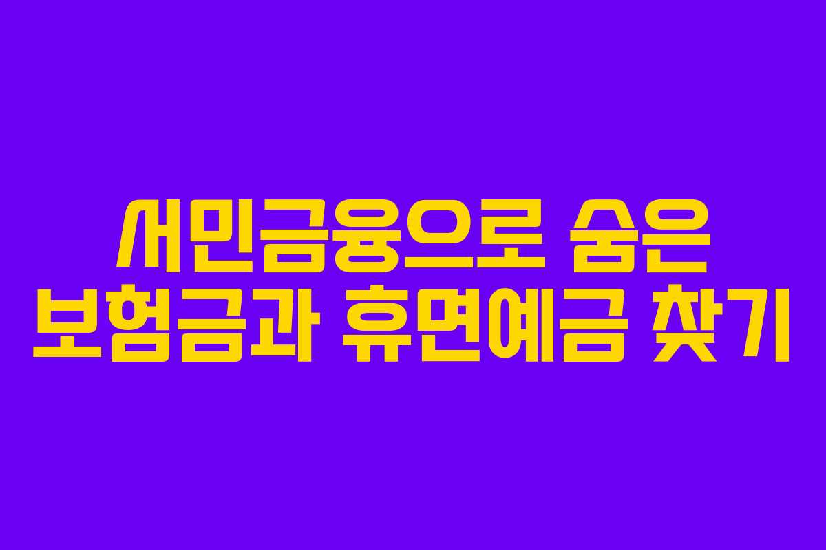서민금융을 통해 잊고 지낸 보험금과 휴면예금을 손쉽게 찾을 수 있습니다. 이러한 금융 자산을 확인하는 방법과 관련 시스템에 대해 알아보겠습니다.