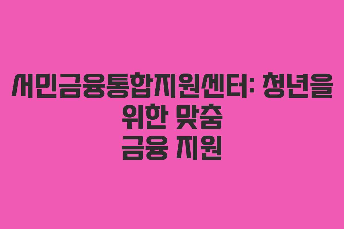 서민금융통합지원센터: 청년을 위한 맞춤 금융 지원