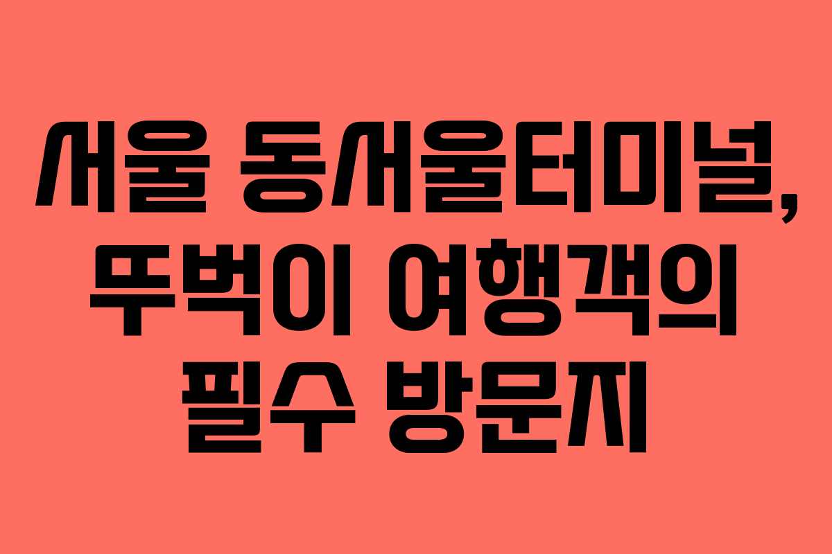 서울 동서울터미널은 국내 여행자들에게 필수적인 교통 허브로, 다양한 버스 노선과 편리한 위치로 많은 이들의 사랑을 받고 있습니다. 이번 글에서는 동서울터미널의 위치, 교통편, 시설 등을 자세히 소개하겠습니다.