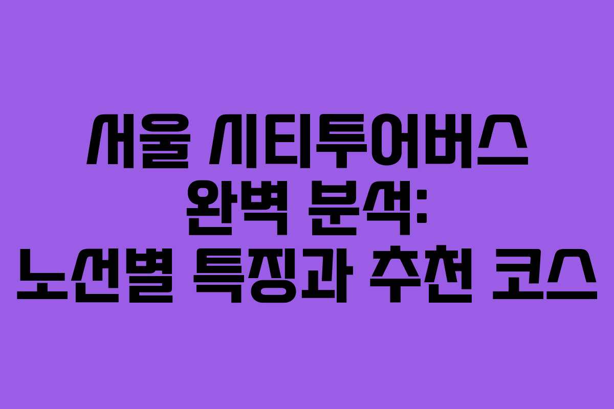 - 서울 시티투어버스 노선별 특징과 추천 코스