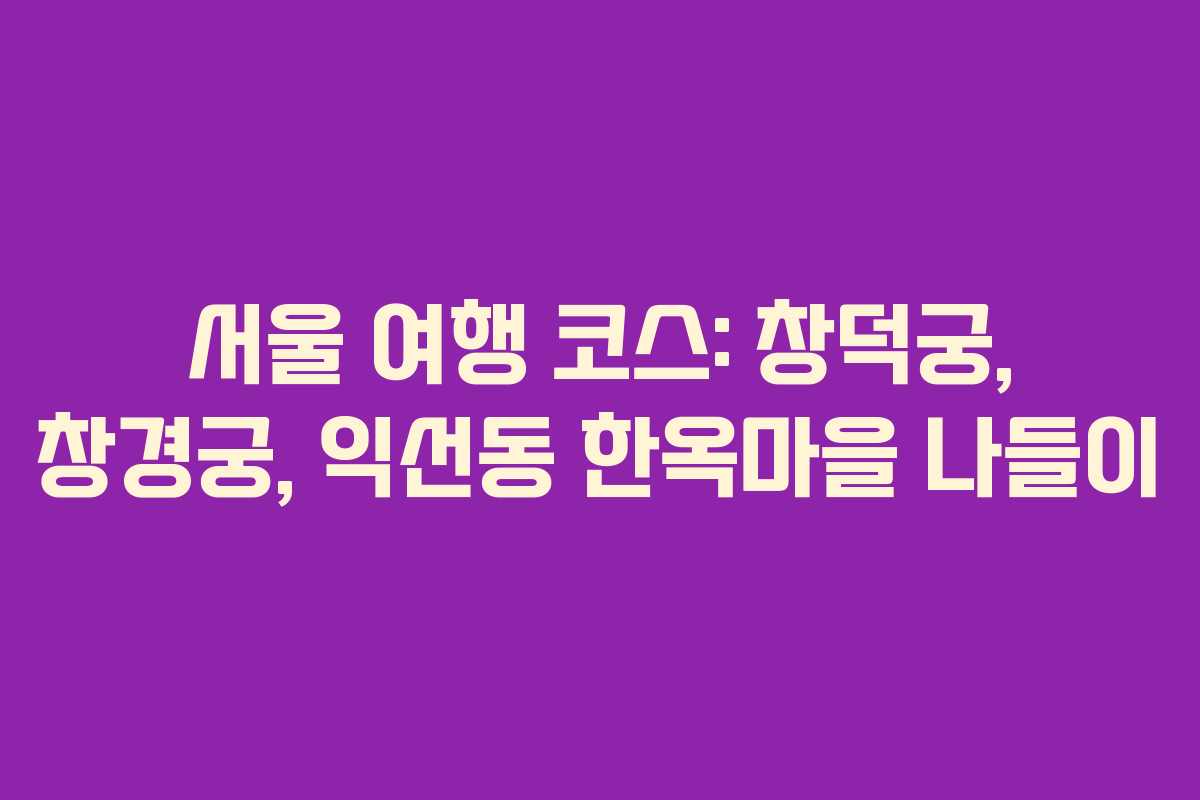 서울은 조선시대의 역사와 문화를 느낄 수 있는 여러 궁궐이 있는 도시입니다. 이번 여행에서는 창덕궁과 창경궁을 탐방하고, 익선동 한옥마을에서의 여유로운 시간을 계획했습니다. 전철 1호선을 이용하여 종로3가역에서 시작하는 이 코스는 역사와 현대가 어우러진 특별한 경험을 제공합니다.