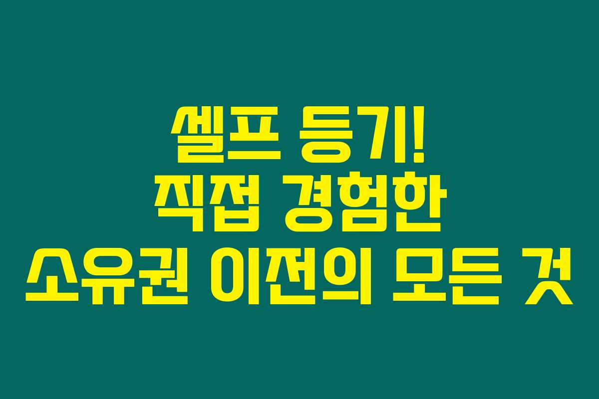 셀프 등기는 정말로 시도해 볼 만한 방법이지요. 여러 서류와 절차를 바로 알아보면, 부담을 덜 수 있습니다. 혼자가 아닌 셀프 등기라는 도전으로 소유권을 이전해 보세요!