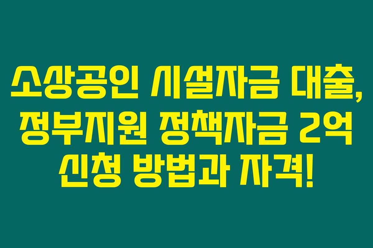 제가 알아본 바로는, 소상공인들을 위한 시설자금 대출은 정부의 정책으로 운영되고 있으며, 이를 통해 최대 2억원의 저금리 대출을 받을 수 있다는 것은 모든 자영업자에게 큰 도움이 된답니다. 아래를 읽어보시면 이 대출의 신청 자격과 방법, 그리고 유의사항 등에 대한 자세한 정보를 확인하실 수 있어요.