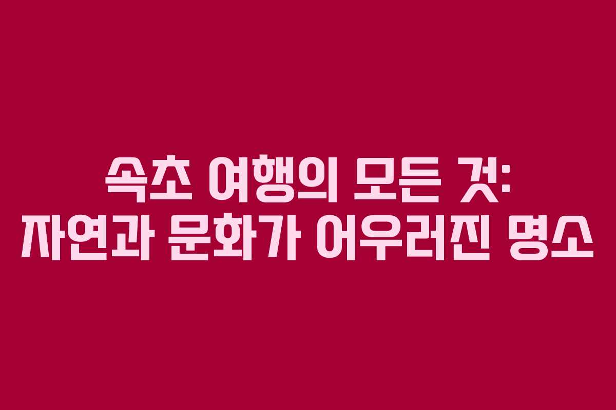 속초는 대포항, 설악산 국립공원, 영랑호 등 다양한 명소를 통해 풍부한 경험을 제공합니다. 자연 경관, 문화, 역사적인 요소들이 어우러져 있어 누구에게나 추천할 만한 여행지입니다. 속초를 방문할 계획이라면 이 포스트에서 소개한 장소와 정보를 참고하여 더욱 즐거운 여행을 즐기시기 바랍니다.