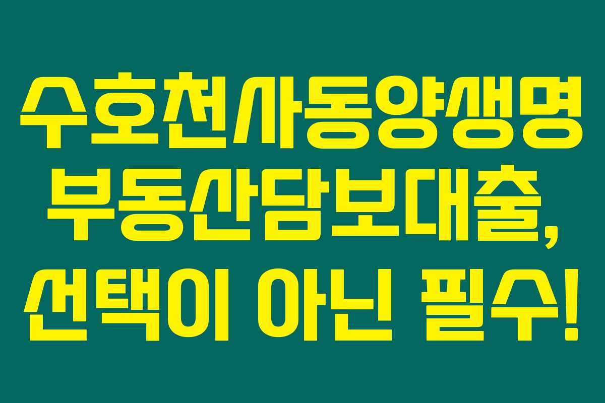 제가 직접 알아본 바로는, 수호천사동양생명 부동산담보대출은 직관적인 조건과 알찬 혜택으로 많은 이들에게 사랑받고 있는 상품입니다. 수호천사 아파트론을 통해 최대 40년의 대출기간과 아파트 시세의 최대 80%까지 대출이 가능하다는 점은 특히 아파트 구매를 고려하는 분들에게 매력적이지요. 아래를 읽어보시면 이 대출의 다양한 특징과 신청 방법에 대해 자세히 알아보실 수 있습니다.