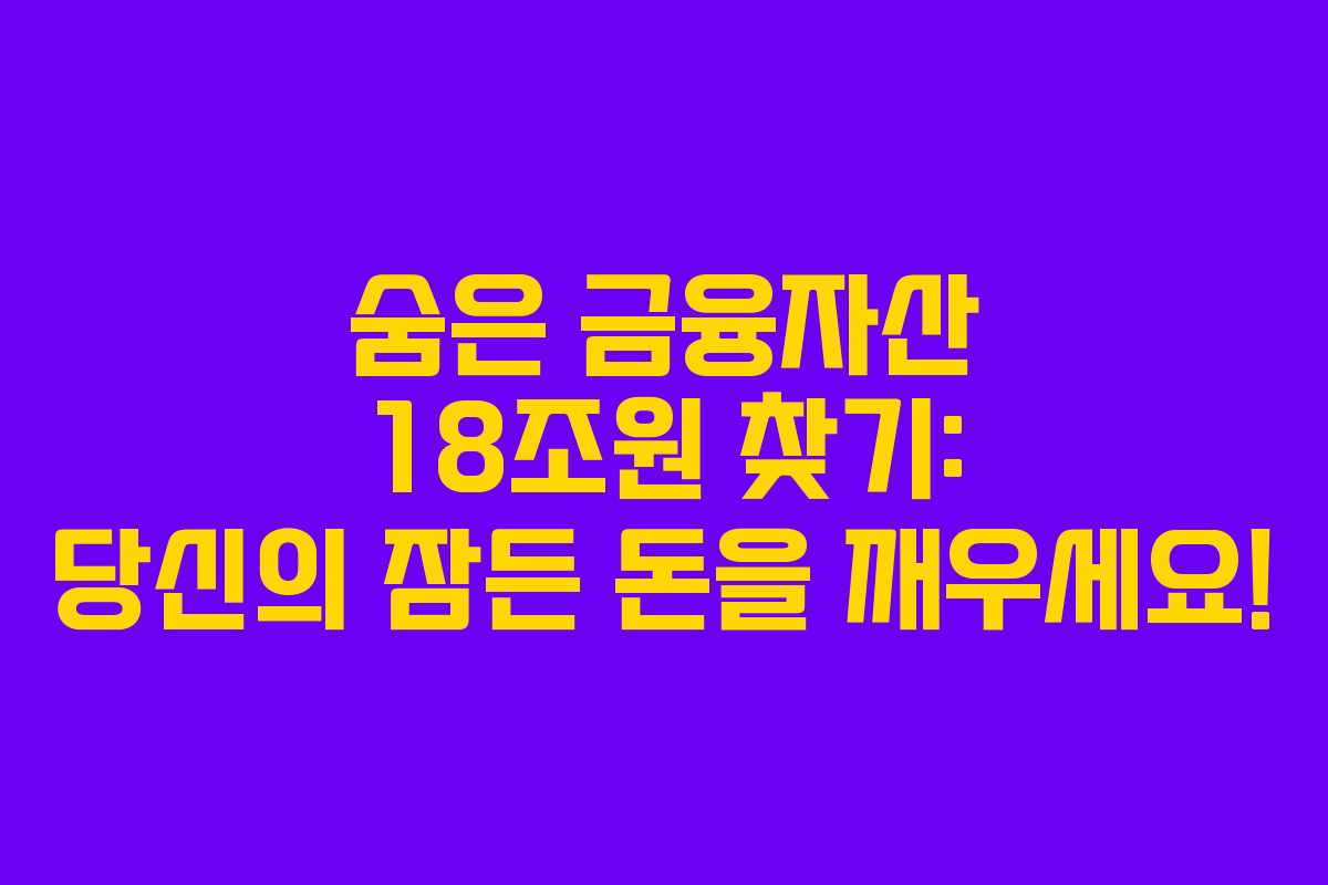 최근 조사에 따르면, 우리나라에는 약 18조원의 숨은 금융자산이 존재합니다. 이 자산들은 개인이 잊고 있는 재산으로, 삶의 질 향상과 재정적 안정성을 위한 중요한 기회가 될 수 있습니다. 정기예금, 보험금, 주식 등 다양한 형태로 존재하는 이 숨은 자산을 찾아 활용하는 것은 개인의 자산 관리에 큰 도움이 됩니다.