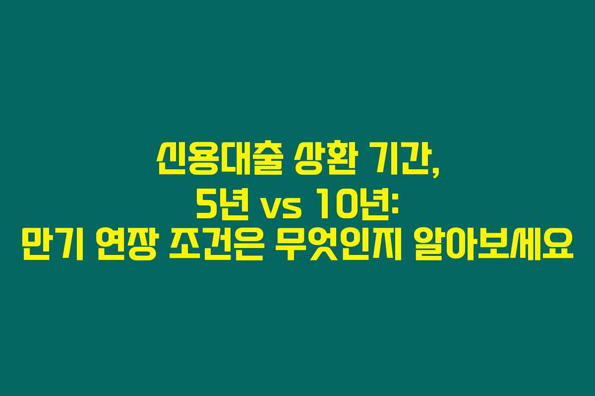 신용대출을 고민하고 계신가요? 신용대출의 상환 기간에 따른 선택은 정말 중요해요. 5년과 10년의 차이점이 궁금하시다면 아래를 읽어보시면 도움이 될 거예요! 특히 대출 만기 연장 조건을 정확히 알지 못하면 막연한 걱정만 늘어날 수도 있어요.