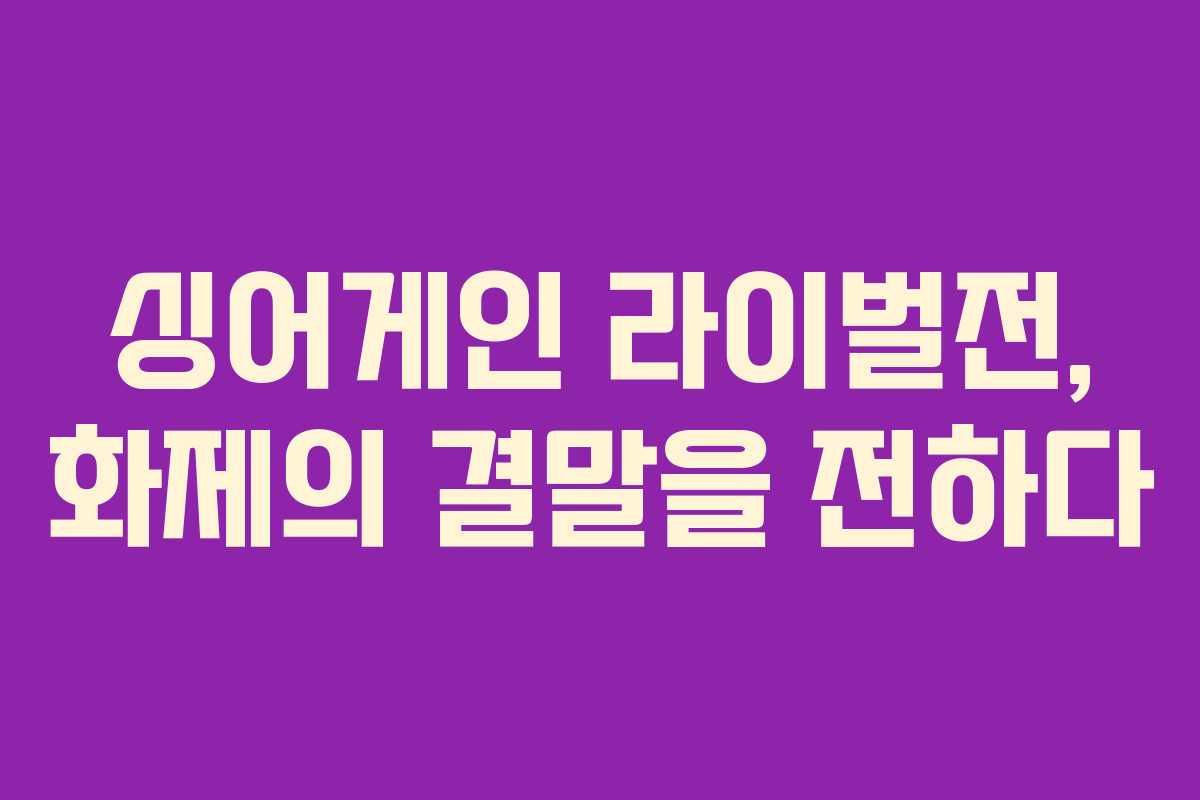 ‘싱어게인’은 매회 역대급 무대를 선보이며 시청자들의 귀를 즐겁게 하고 있습니다. 앞으로의 무대에서도 어떤 놀라운 공연이 펼쳐질지 많은 이들의 기대를 모으고 있습니다.