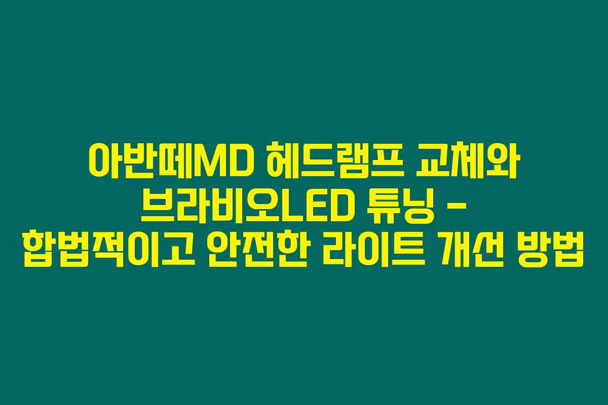 차량의 전조등이 어두워 시야 확보가 어렵다면 어떤 기분인지 아시나요? 아반떼 MD 모델을 타시는 분이시라면 이 문제를 반드시 해결해야 할 필요성이 있답니다. 이 글에서는 아반떼MD 헤드램프 교체와 브라비오LED 튜닝에 대해 알아보며, 안전하고 합법적인 방법으로 차량의 야간 시야를 개선하는 방법을 소개할게요. 아래를 읽어보시면 나의 차량도 더욱 안전하고 세련되게 바꿀 수 있는 꿀팁을 얻을 수 있습니다.