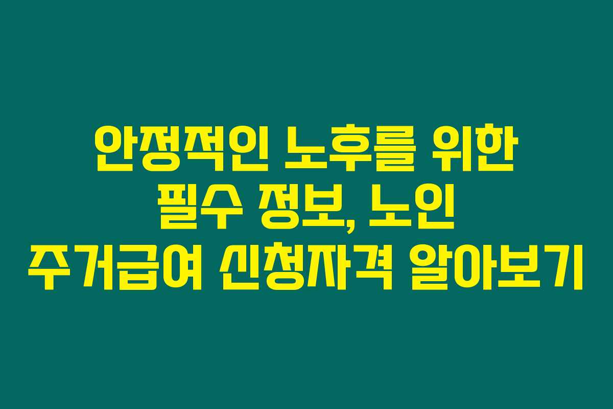 제가 직접 체크해본 바로는, 노인 주거급여 신청자격에 대한 정보는 매우 중요합니다. 나이가 들어가며 주거 안정은 더욱 중요한 문제로 다가오기에 이 제도를 이해하는 것이 필요하답니다. 이번 글에서는 노인 주거급여 신청자격에 대해 명확한 정보를 제공해드릴게요.