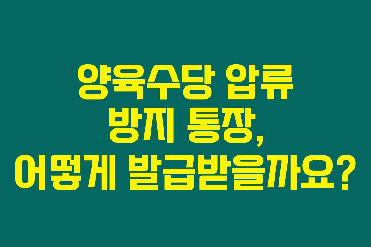 제가 직접 알아본 바로는 양육수당 압류 방지 통장은 양육비를 안전하게 보호해주는 특별한 통장입니다. 이 통장은 양육수당이 채권자에게 압류되는 문제를 방지하기 위해 정부에서 제공하는 솔루션이에요. 그래서 양육을 하고 계신 가정에서는 이 통장을 발급 받는 것이 매우 중요합니다. 아래를 읽어보시면 양육수당 압류 방지 통장을 발급받는 방법에 대해 자세히 안내해 드리겠습니다.
