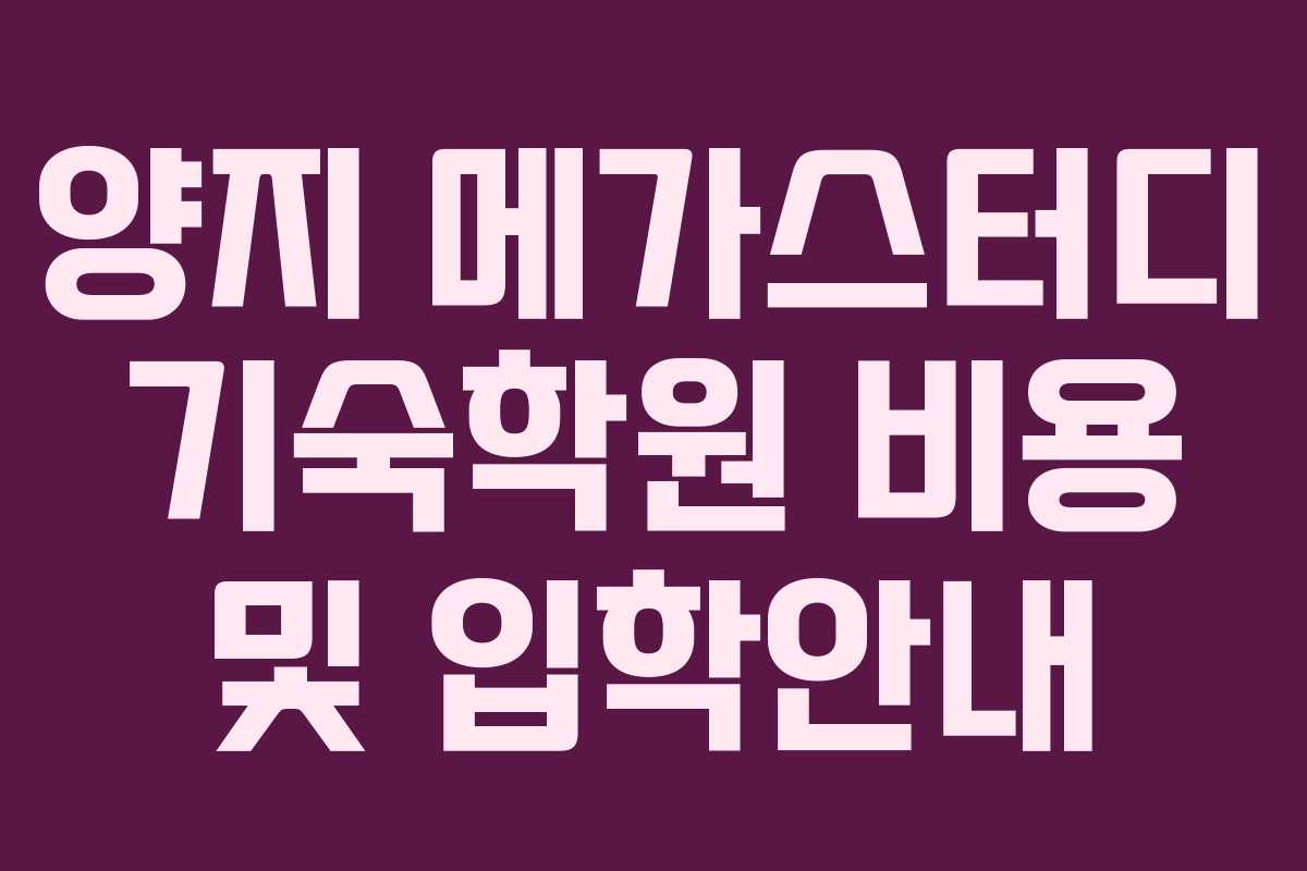 양지 메가스터디 기숙학원 비용 및 입학안내