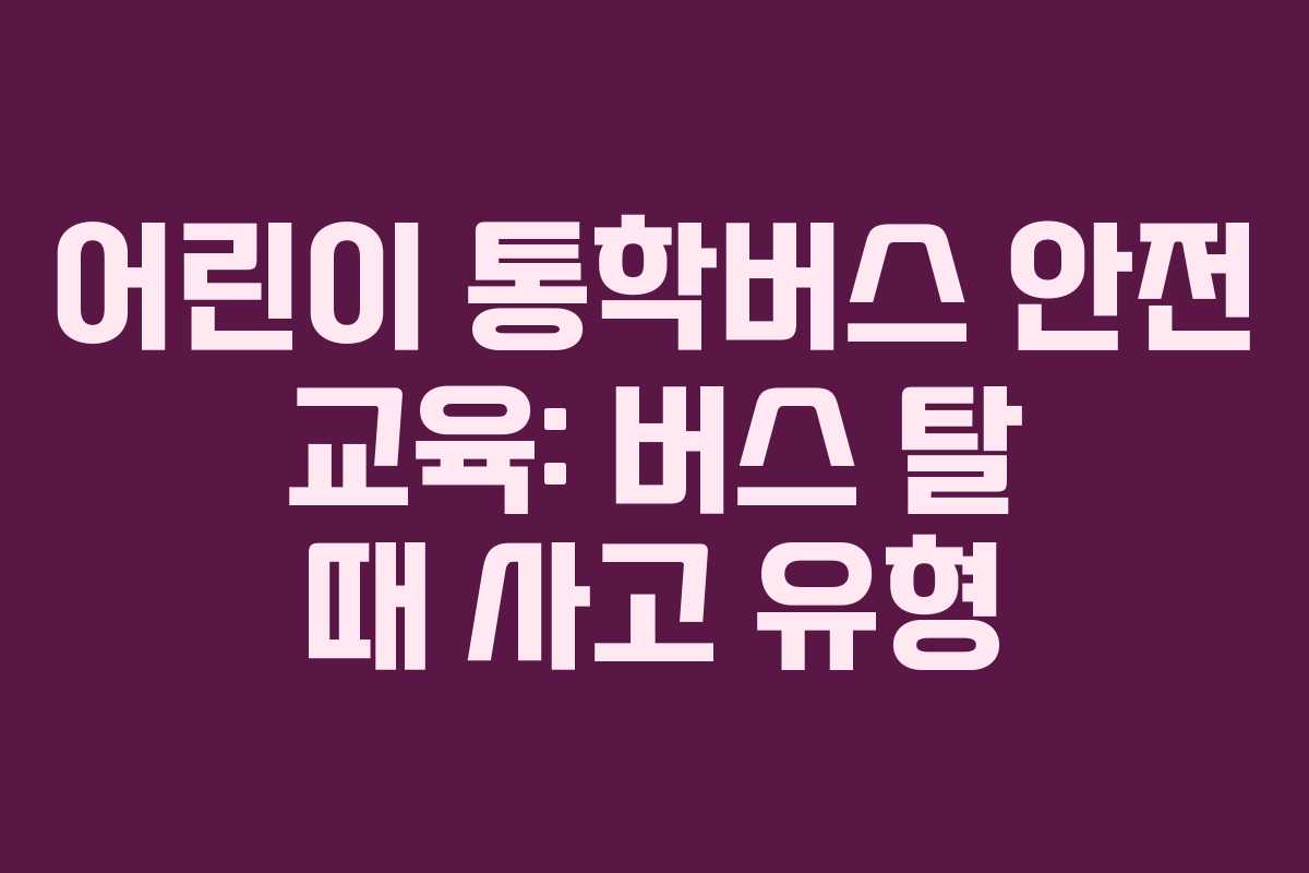 어린이 통학버스는 안전한 통학을 위한 중요한 역할을 합니다. 그러나 통학버스를 이용할 때 발생할 수 있는 다양한 사고 유형에 대해 미리 교육받는 것이 필요합니다. 본 글에서는 통학버스에 탈 때 주의해야 할 사고 유형과 예방 방법에 대해 살펴보겠습니다.