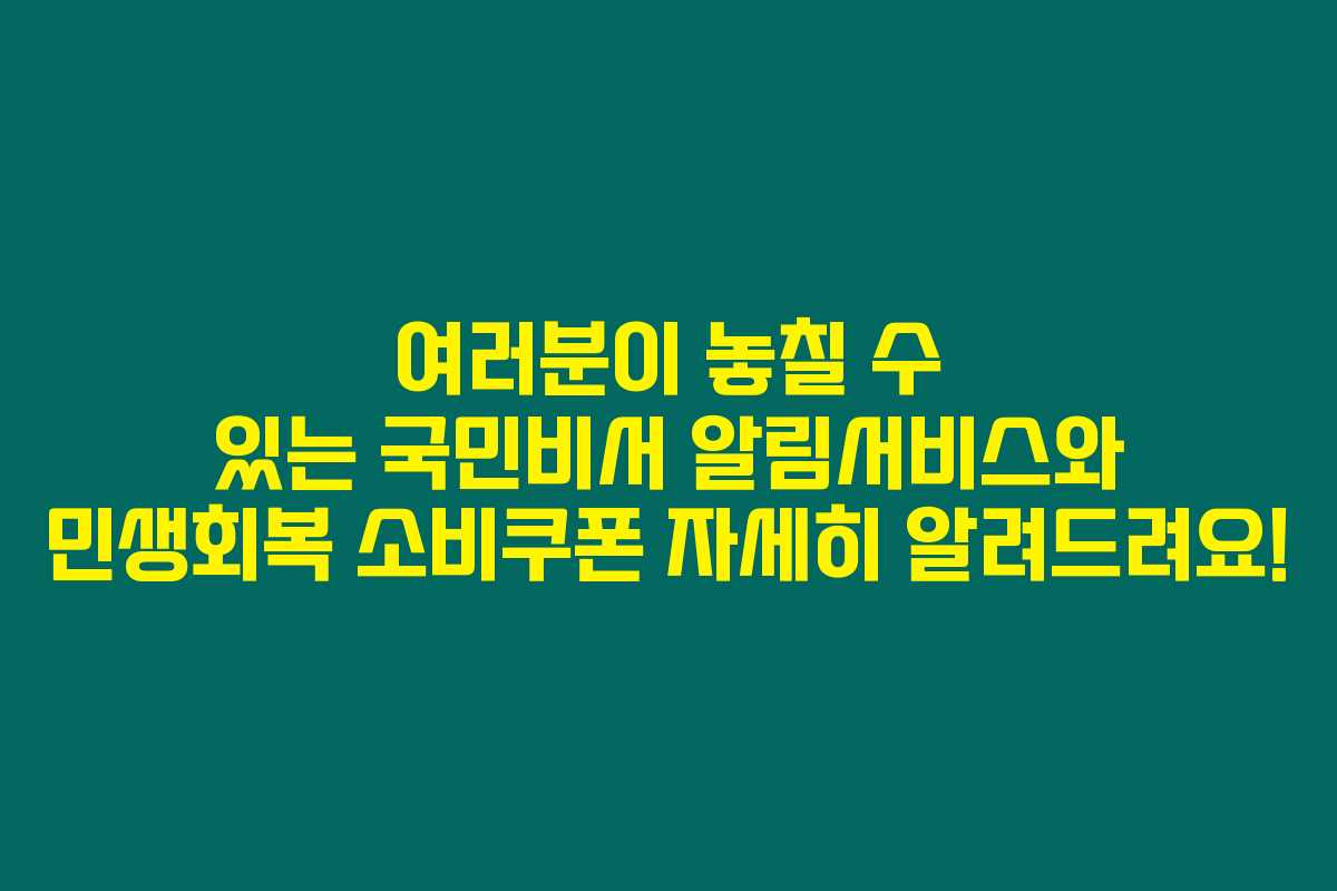 국민비서가 당신에게 필요한 모든 소비쿠폰 정보를 알려준다면 당신의 생활비 크게 줄일 수 있다는 것을 알고 계신가요? 이번 글에서는 국민비서 알림서비스와 관련된 민생회복 소비쿠폰에 대한 중요한 정보들을 상세히 설명해 드릴게요. 모르고 지나친 지원금을 놓치는 일이 없도록 아래를 읽어보시면 많은 도움이 될 거예요.
