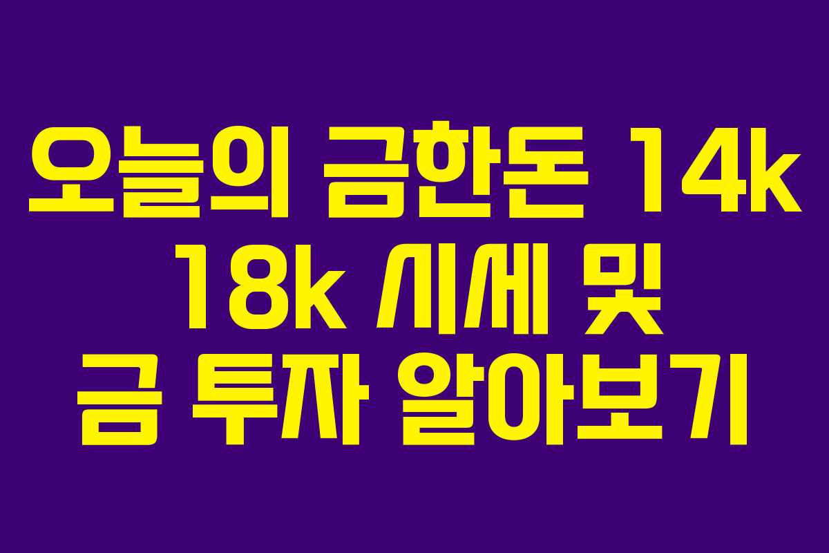 최근 금에 대한 관심이 높아지면서 많은 사람들이 금 시세를 주의 깊게 살펴보고 있습니다. 오늘은 금 한 돈 시세와 함께, 14k 및 18k 금 시세에 대한 정보와 금 투자 방법에 대해 자세히 알아보겠습니다.