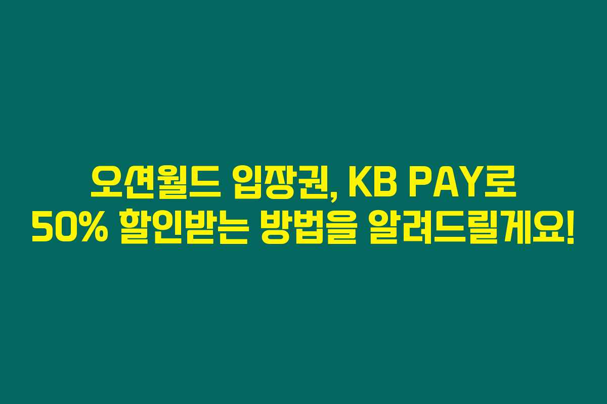 오션월드에 가고 싶은데 입장료가 부담되신가요? KB PAY로 결제를 하면 절반의 가격으로 즐길 수 있는 기회를 놓치지 마세요. 이 글을 통해 오션월드 입장권을 KB PAY로 50% 할인받는 법에 대해 알아보겠습니다. 할인 꼼수를 모르고 간다면 손해일지도요!^^