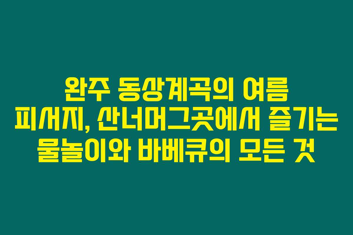 이곳은 청정 자연과 시원한 물놀이로 더위를 잊게 해주고 그늘 아래서 바베큐를 즐길 수 있는 공간을 제공해 준답니다. 가족이나 친구들과 함께 여름을 만끽하고 싶다면, 완주 동상계곡 꼭 확인해 보세요!