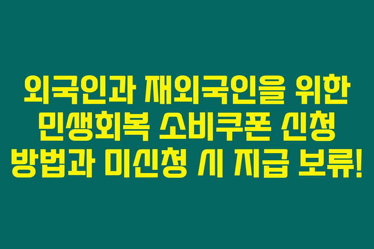 2025년 여름, 정부가 국민의 삶을 돕기 위해 시행하는 민생회복 소비쿠폰은 정말 반가운 소식이에요. 그런데 외국인이나 재외국인도 이 혜택을 받을 수 있을까요? 이 글을 통해 아래를 읽어보시면 외국인 및 재외국인이 민생회복 소비쿠폰을 신청하는 방법과 미신청 시 발생할 수 있는 지급 보류 리스크에 대해 상세히 알려드릴게요. 시작해 볼까요?