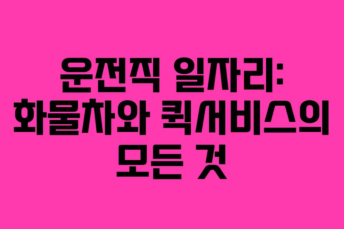 운전직 일자리: 화물차와 퀵서비스의 모든 것