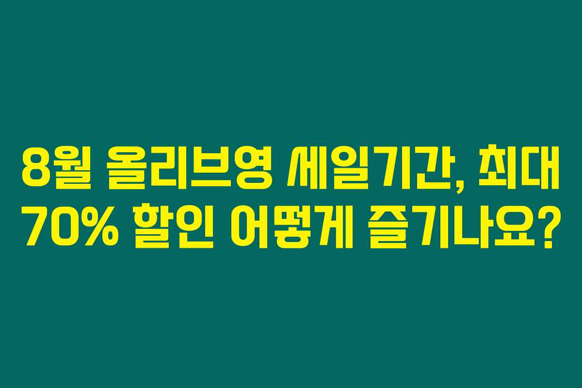8월, 여름의 더위를 시원하게 날려줄 기회가 찾아왔어요! 만약 올리브영 세일기간에 대해 알고 계신다면, 최대 70% 할인 혜택을 놓칠 이유가 없겠죠? 아래를 읽어보시면, 올영세일의 모든 정보를 빠짐없이 알게 될 거예요!