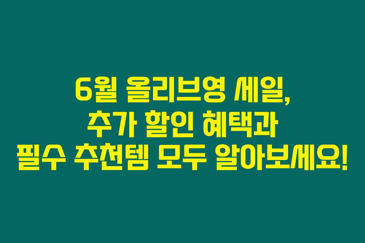 6월이 왔는데요 이제는 올리브영 세일 기간을 놓칠 수 없죠? 올리브영의 특별 할인기간은 저렴하게 제품을 구매할 수 있는 기회랍니다. 이번 6월에는 추가 할인 혜택까지 준비되어 있는데요 어떤 제품을 챙겨야 할지 알고 싶다면 아래를 읽어보시면 정말 유용할 거예요.