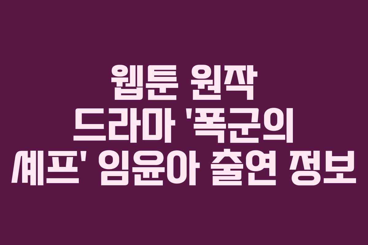 드라마 팬들에게 기대가 큰 tvN의 새 토일드라마 ‘폭군의 셰프’가 2025년 8월 23일 첫 방송을 앞두고 있습니다. 원작은 박국재 작가의 웹소설이자 인기 웹툰인 〈연산군의 셰프로 살아남기〉로, 이미 많은 팬층을 확보하고 있는 작품입니다. 특히 임윤아의 복귀작으로서 더욱 주목받고 있습니다.
