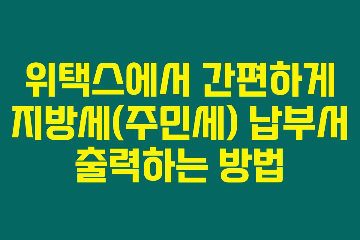 주민세를 은행에 가는 대신 위택스를 통해 납부하면 시간과 노력을 아낄 수 있어요. 더욱더 스마트한 세무 처리를 원하신다면, 집에서 쉽게 처리해 보세요.