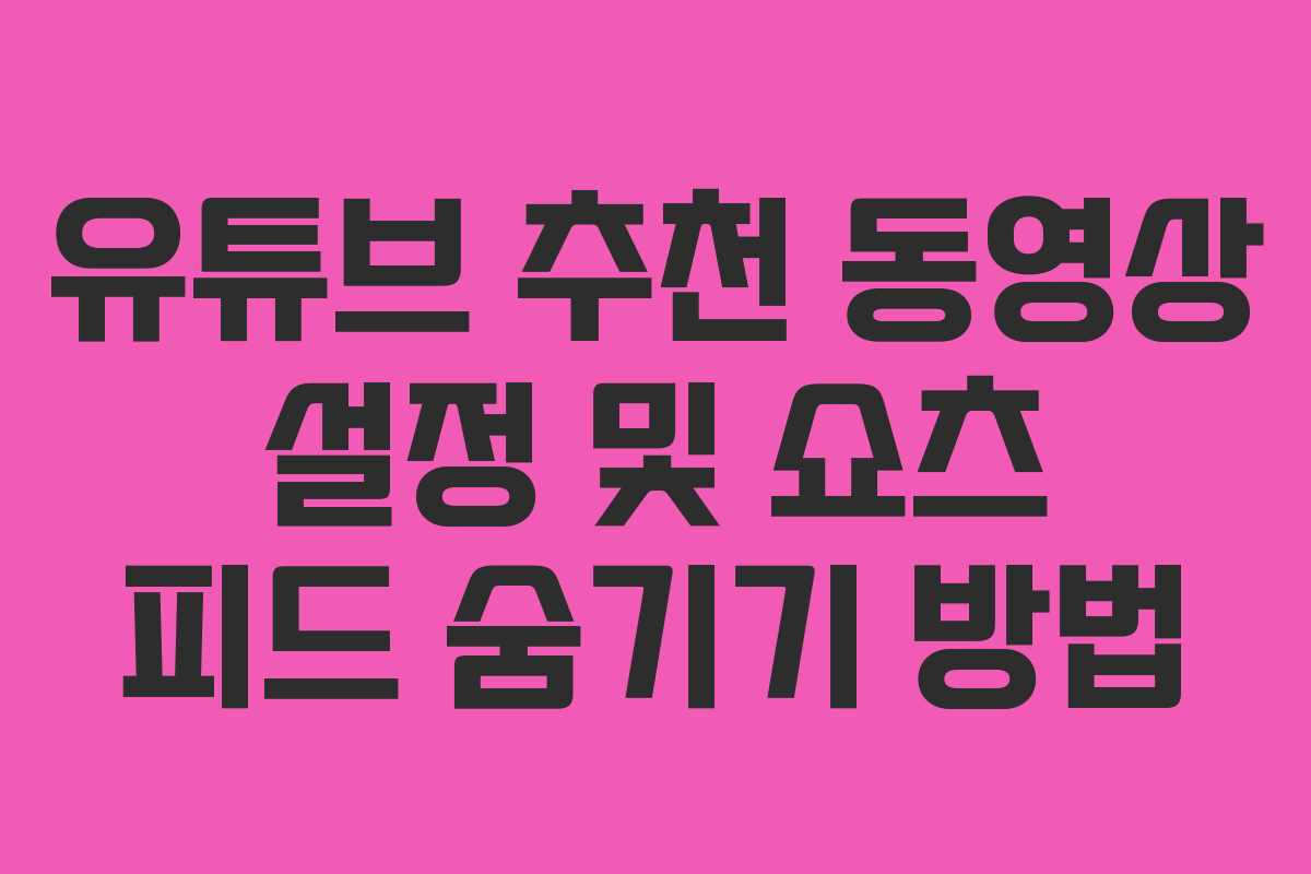 유튜브에서 원치 않는 쇼츠와 실시간 콘텐츠를 차단하려면 간단한 설정 변경으로 개인화된 환경을 구축할 수 있습니다. 추천 동영상 설정, 쇼츠 피드 숨기기, 그리고 실시간 알림 끄기를 통해 보다 쾌적한 유튜브 사용 경험을 최적화해 보세요. 이러한 설정을 통해 깔끔하고 편리한 유튜브 시청 환경을 누릴 수 있습니다.