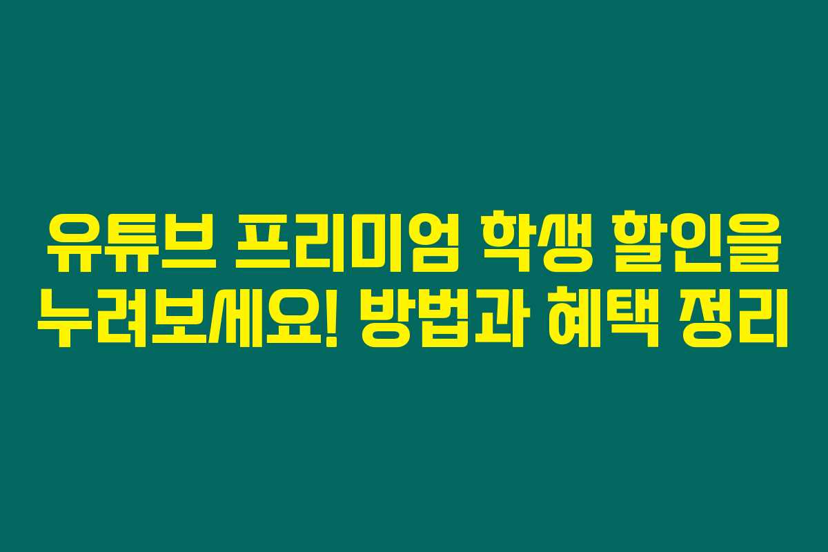 유튜브 프리미엄은 다양한 콘텐츠를 광고 없이 즐길 수 있게 해주는 멋진 서비스에요. 하지만 일반 가격이 부담스럽게 느껴질 수도 있죠. 그런 학생분들에게 희소식! 유튜브는 학생 할인 가격으로 제공하는 플랜이 있어요. 아래를 읽어보시면 이 경제적인 혜택을 누릴 수 있는 방법과 절차에 대해 자세히 안내해 드릴게요.