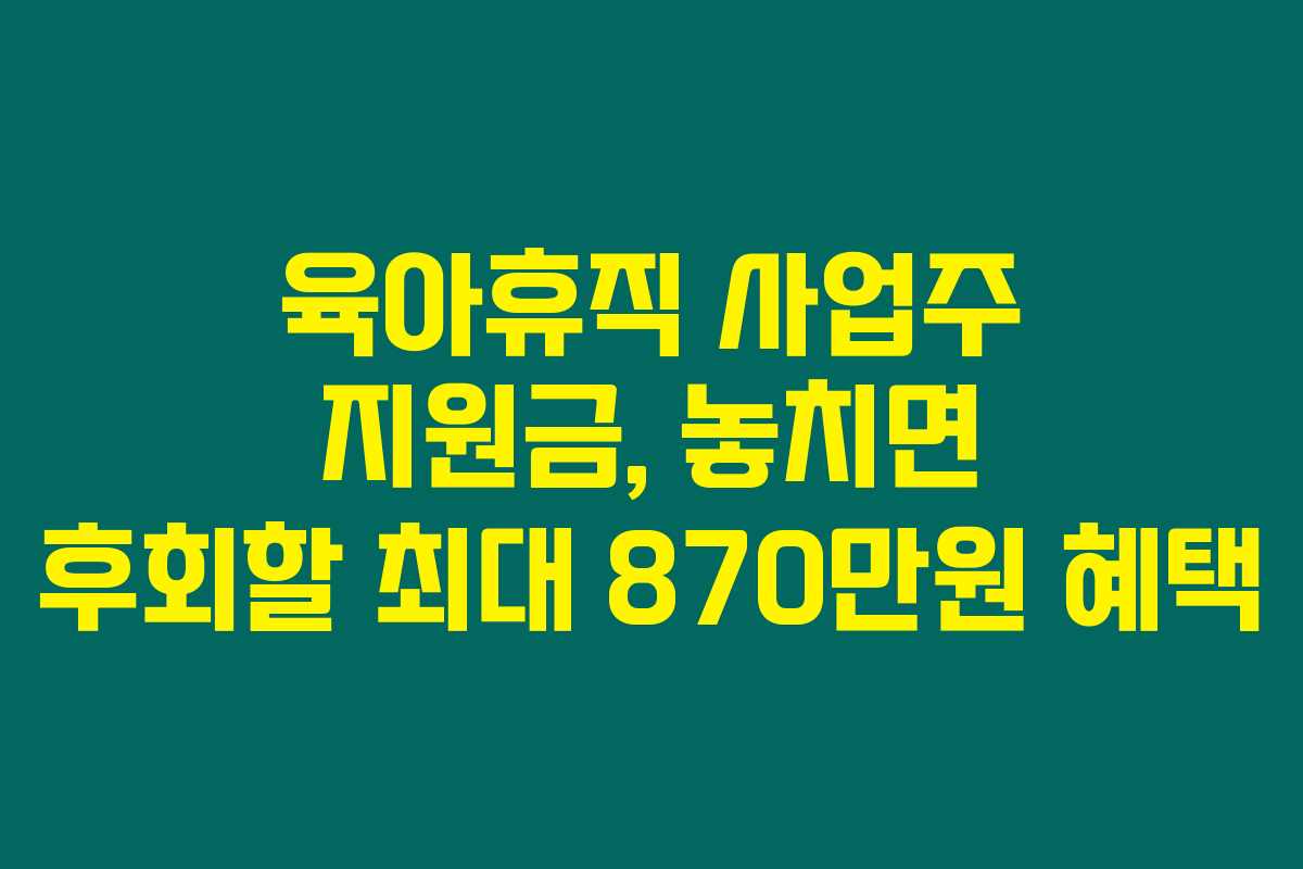 육아휴직 사업주 지원금은 육아휴직을 부여한 사업주에게 큰 도움이 되는 제도입니다. 최대 870만원의 지원 혜택을 통해 무거운 부담을 덜 수 있는 기회이니 신청하셔서 놓치지 마세요. 육아와 일을 병행하는 데 큰 힘이 될 것입니다.