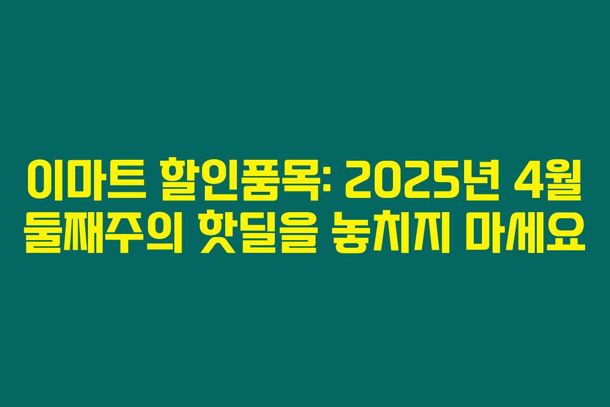 이마트 할인품목: 2025년 4월 둘째주의 핫딜을 놓치지 마세요
