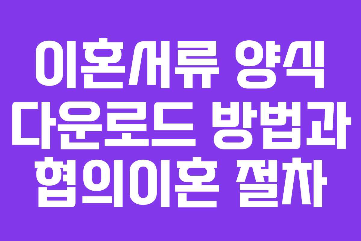 이혼은 많은 사람들이 선택하는 어려운 결정 중 하나입니다. 갈등이 지속될 경우, 더 나은 미래를 위해 이혼을 고려하는 분들이 늘고 있습니다. 특히, 협의이혼은 부부 간의 원만한 합의를 통해 이루어질 수 있어 많은 사람들이 선호하는 방식입니다. 이번 글에서는 협의이혼 절차와 필요한 이혼서류 양식 다운로드 방법에 대해 알아보겠습니다.