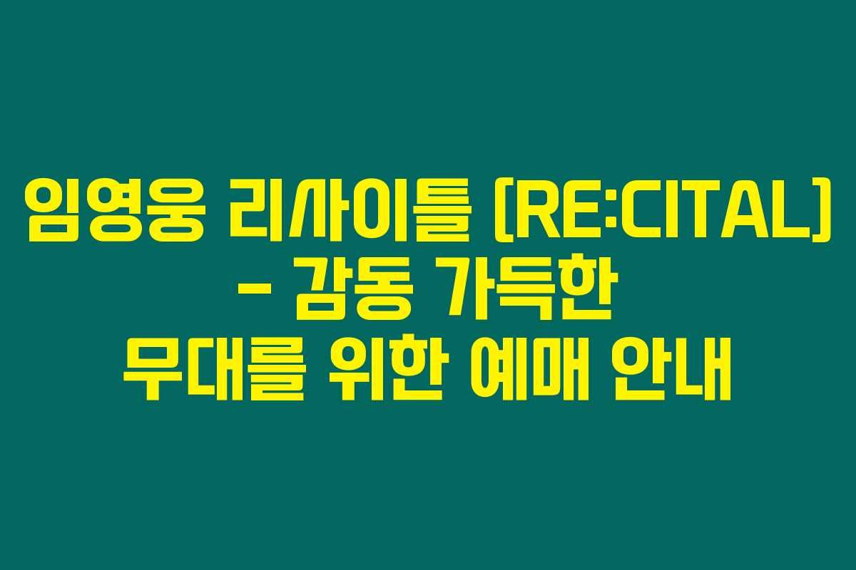 이제 임영웅 리사이틀 [RE:CITAL] 예매 정보와 공연 일정에 대해 잘 알고 계시죠? 감동적인 무대를 놓치지 마세요!
