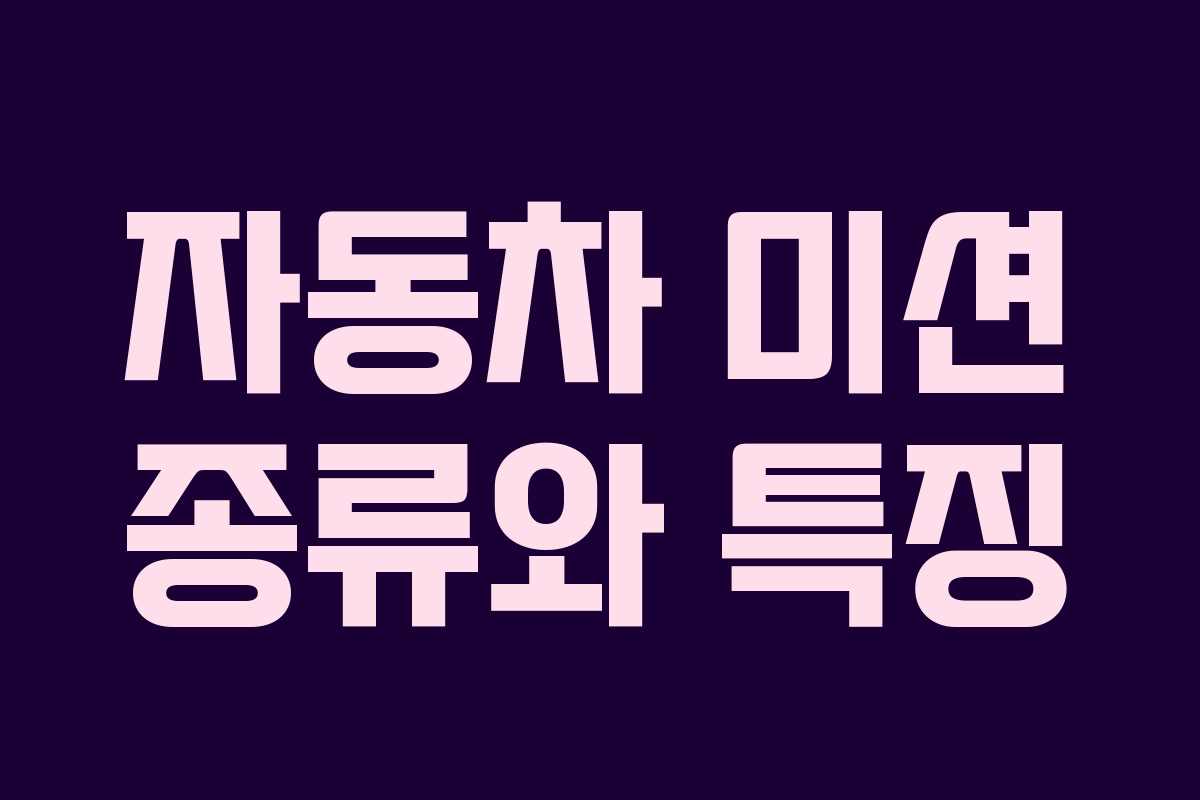 자동차의 미션은 차량의 동력을 효율적으로 전달하는 필수 요소입니다. 다양한 종류의 미션이 있으며, 각각의 특성과 장단점이 존재합니다. 이번 글에서는 주요 자동차 미션의 종류와 그 특징을 자세히 알아보겠습니다.