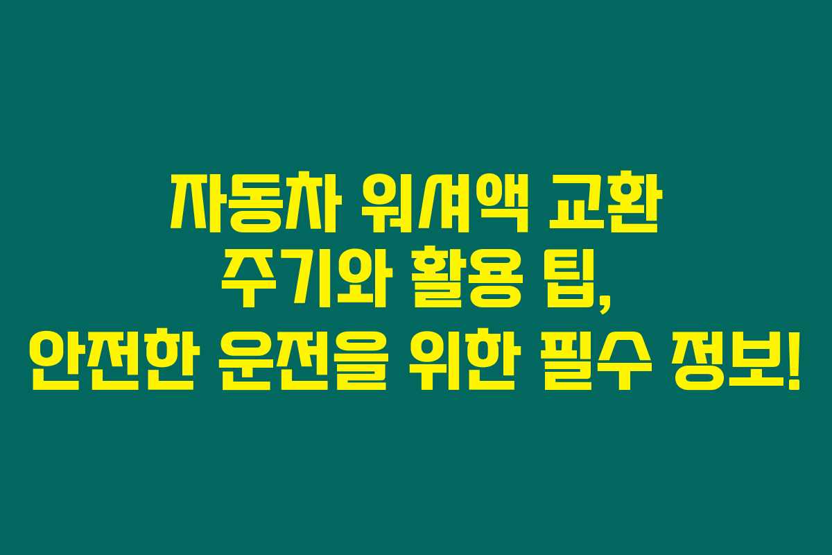 여러분, 안전한 운전을 위해 자동차 워셔액 관리와 교환 주기를 잘 지키세요. 생활 속 작은 관심으로 더 안전한 자동차 생활을 누리실 수 있을 거예요!