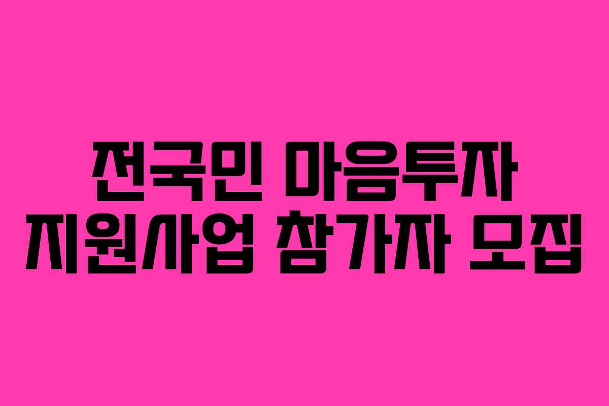 • 전국민 마음투자 지원사업의 제공기관은 사회서비스 전자바처 포털에서 지역별로 검색할 수 있습니다.