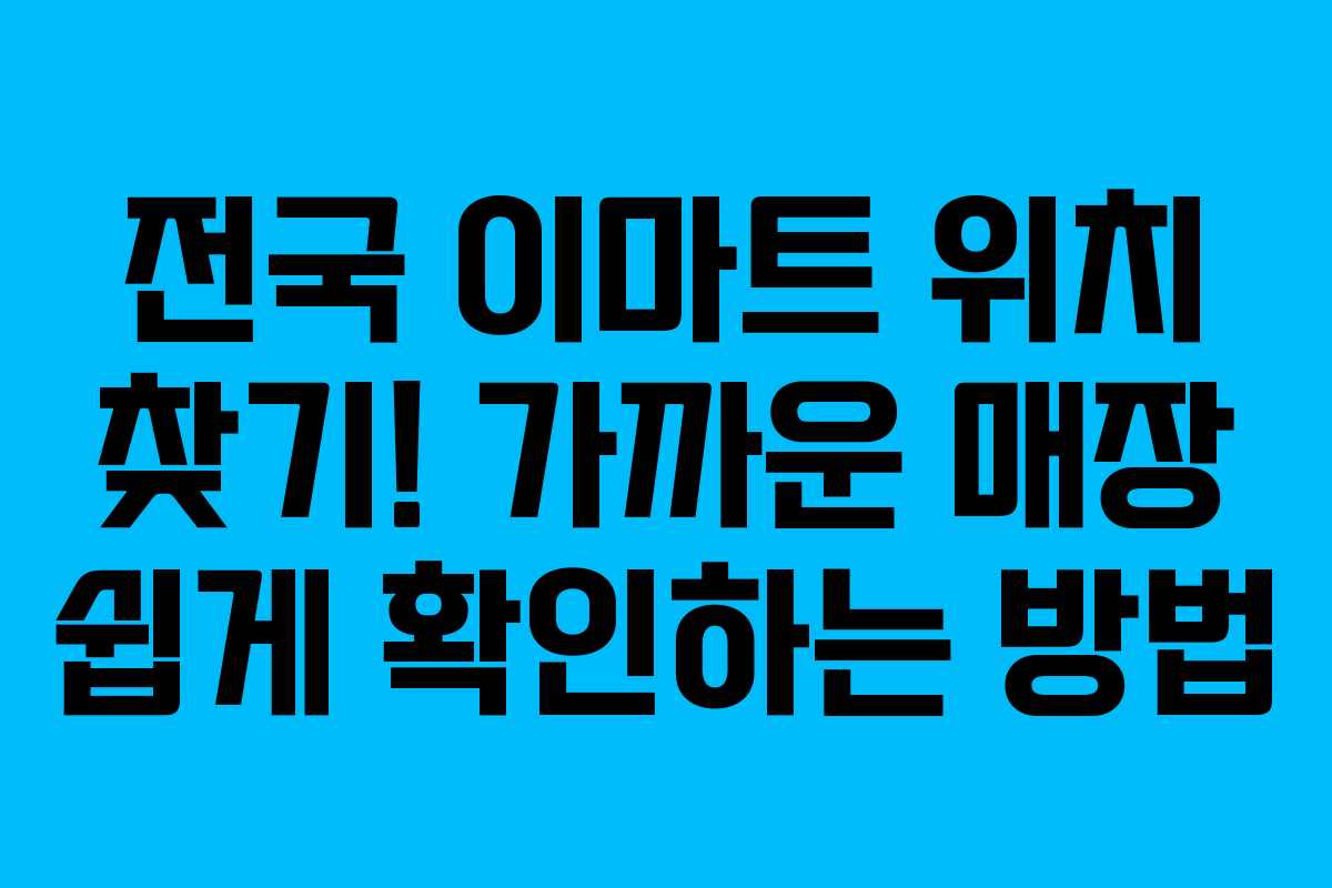 이마트에서 편리하게 쇼핑하려면 가까운 매장을 먼저 찾고, 다양한 혜택을 챙기는 것이 중요합니다. 전국 이마트 위치 정보를 활용하여 알뜰한 쇼핑을 즐기세요.