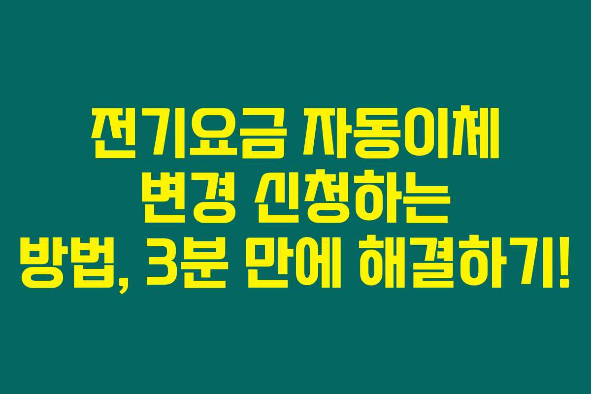 전기요금 자동이체 방법을 바꾸는 건 정말 간단해요. 하지만 몇 가지 단계를 알아야 하죠. 여기서 설명하는 방법을 따라 하신다면, 3분 안에 자동이체 변경을 끝낼 수 있을 거예요. 혹시나 누락되면 안 되는 정보들이니 잘 살펴보세요!