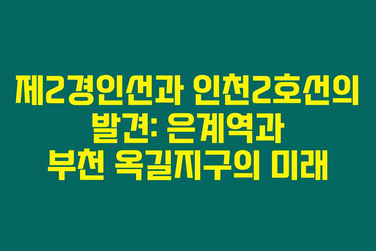 제가 직접 체크해본 바로는, 제2경인선과 인천2호선의 연장이 향후 교통체계와 지역 발전에 큰 영향을 미칠 것이라 확신합니다. 특히 은계역과 부천 옥길지구는 향후 교통 중심지로 떠오를 것으로 보이는데요, 아래를 읽어보시면 제2경인선과 인천2호선의 구체적인 내용과 그 중요성에 대한 정보가 담겨 있습니다.