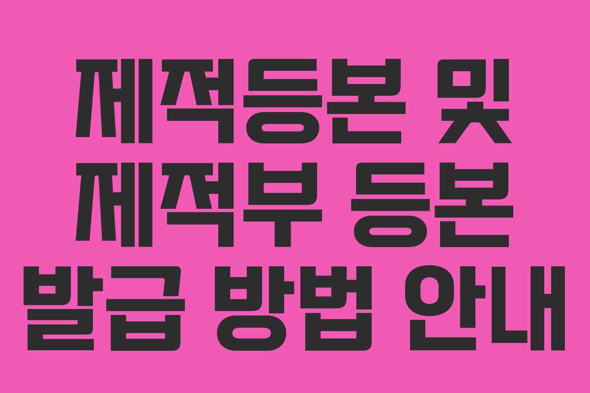제적등본은 주민등록 정보 중 일부가 제외된 문서로, 주로 결혼 시에 사용됩니다. 결혼 전 상대방과 그 가족이 기본적인 주민등록 정보를 확인할 수 있게 해주는 중요한 서류입니다. 이번 글에서는 제적등본을 발급받는 방법과 관련된 정보를 자세히 알아보겠습니다.
