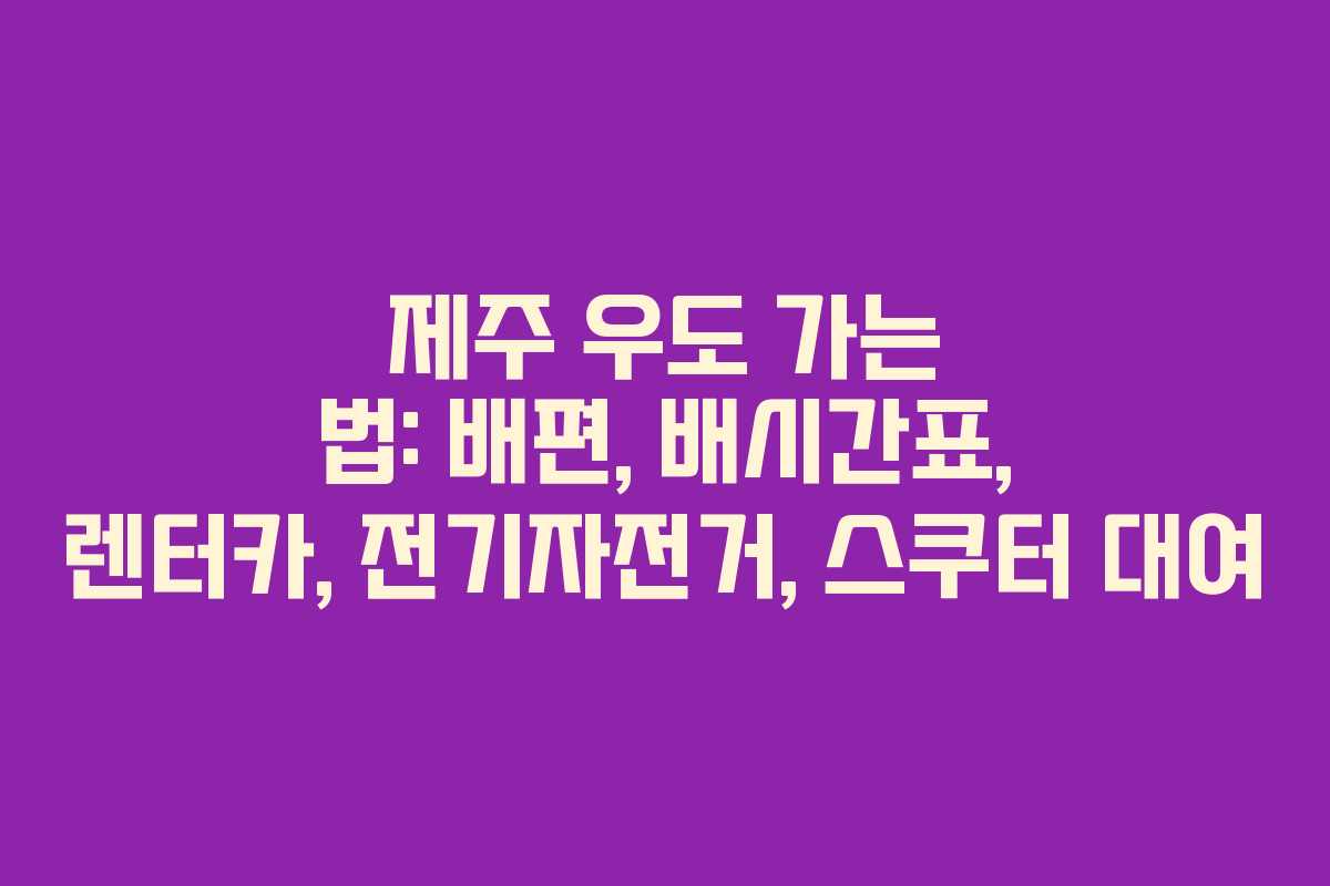 제주 우도는 아름다운 풍경과 한적한 분위기로 당일치기 여행지로 인기가 높습니다. 특히 주말에는 많은 관광객이 찾기 때문에 미리 계획하는 것이 좋습니다. 우도는 종달항과 성산항에서 배를 타고 약 15분 거리에 위치해 있습니다. 이번 글에서는 우도에 가는 방법과 배편, 대여 서비스에 대해 상세히 안내하겠습니다.