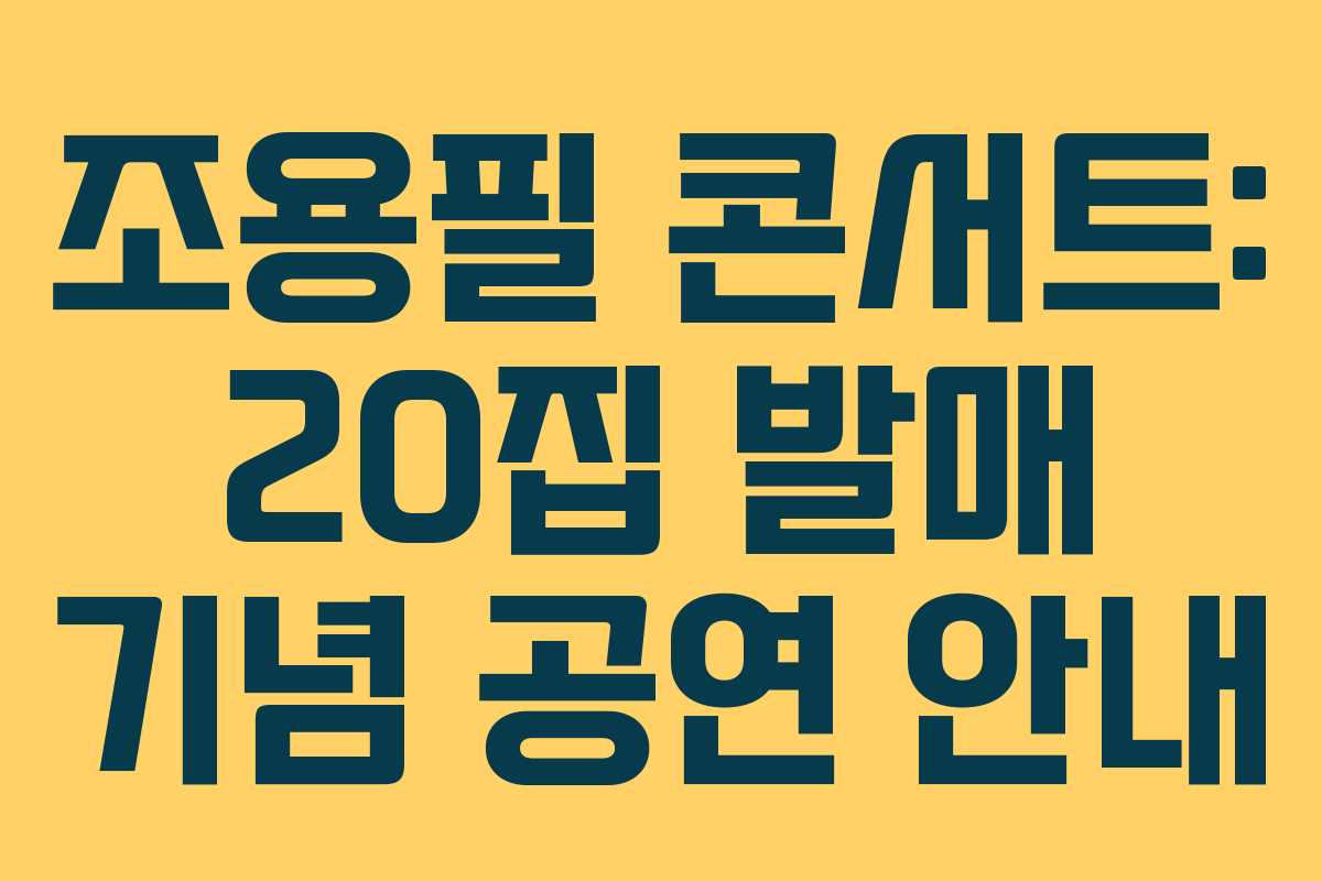 2024년 조용필의 콘서트가 열리며, 티켓 판매가 시작되었습니다. 이번 공연은 ’20집 발매기념 조용필&위대한 탄생’이라는 주제로 진행됩니다. 10월 22일에 발매되는 조용필의 20집 앨범을 기념하는 자리로, 많은 팬들의 관심이 집중되고 있습니다.