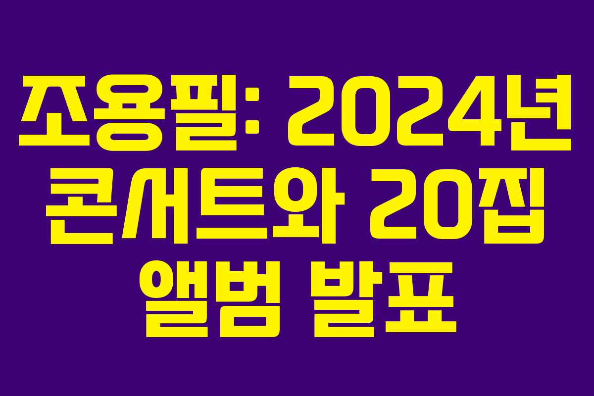 2024년 10월 22일, 조용필은 11년 만에 정규 20집 앨범 ’20’을 발표했습니다. 이번 앨범에는 총 7곡이 수록되어 있으며, 타이틀곡 ‘그래도 돼’는 현대 사회를 살아가는 이들에게 위로와 격려의 메시지를 전달합니다.